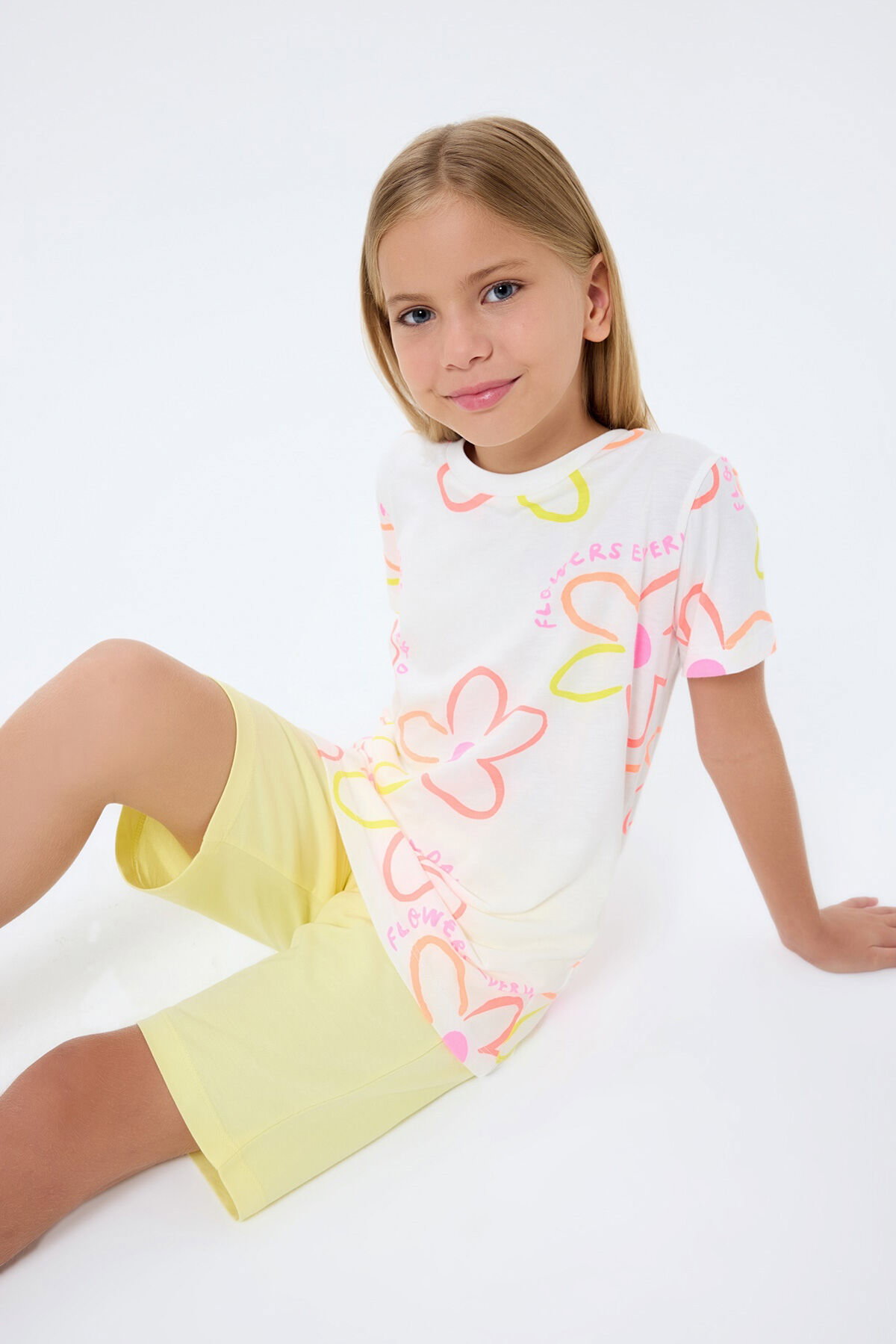Rolypoly Kız Çocuk Krem Bermuda Takım